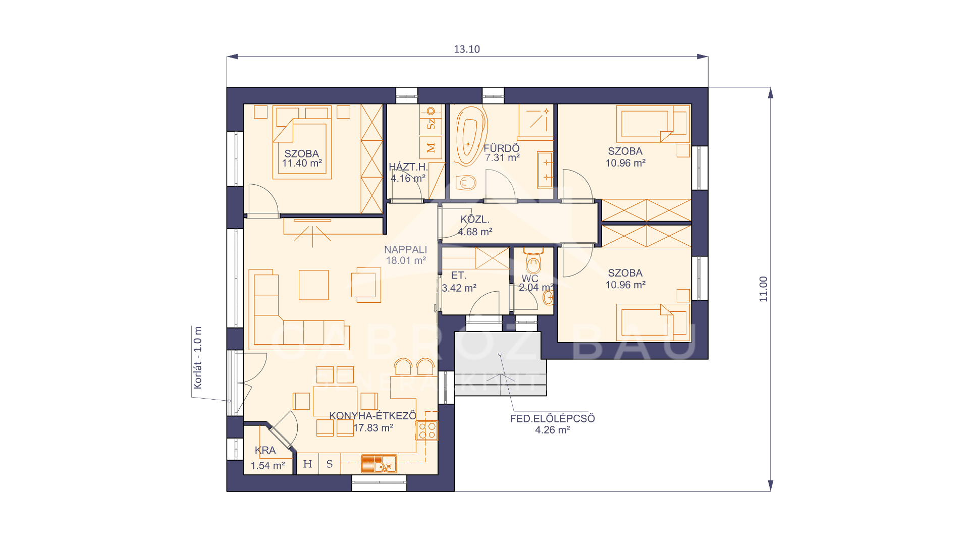 Amerikai stílusú, 92 m2 hasznos alapterület